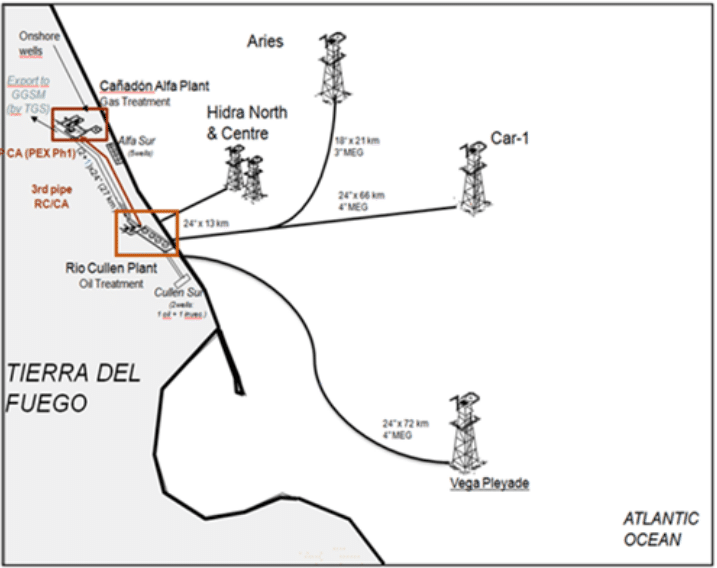 Este proyecto, junto al el reciente desarrollo de Vega Pléyade permite disponer de mayores volúmenes de gas en el mercado local y de este modo disminuir las importaciones en aproximadamente 8 millones de metros cúbicos durante el período de mayor demanda en Argentina.