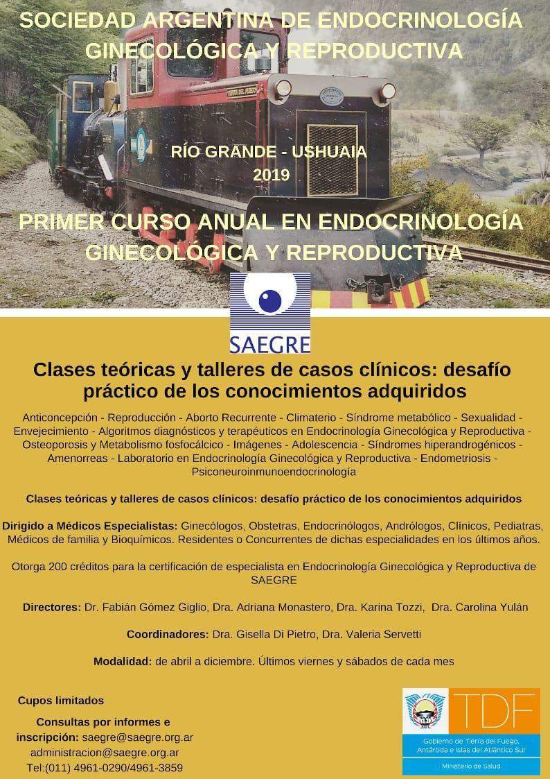Organizado por el Programa Provincial de Fertilización Medicamente Asistida, se realiza durante este viernes 28 y sábado 29 de junio el tercer encuentro del curso Anual de Endocrinología Ginecológica y Reproductiva, dictado por la Sociedad Argentina SAEGRE, en la Universidad de Tierra del Fuego en Ushuaia.