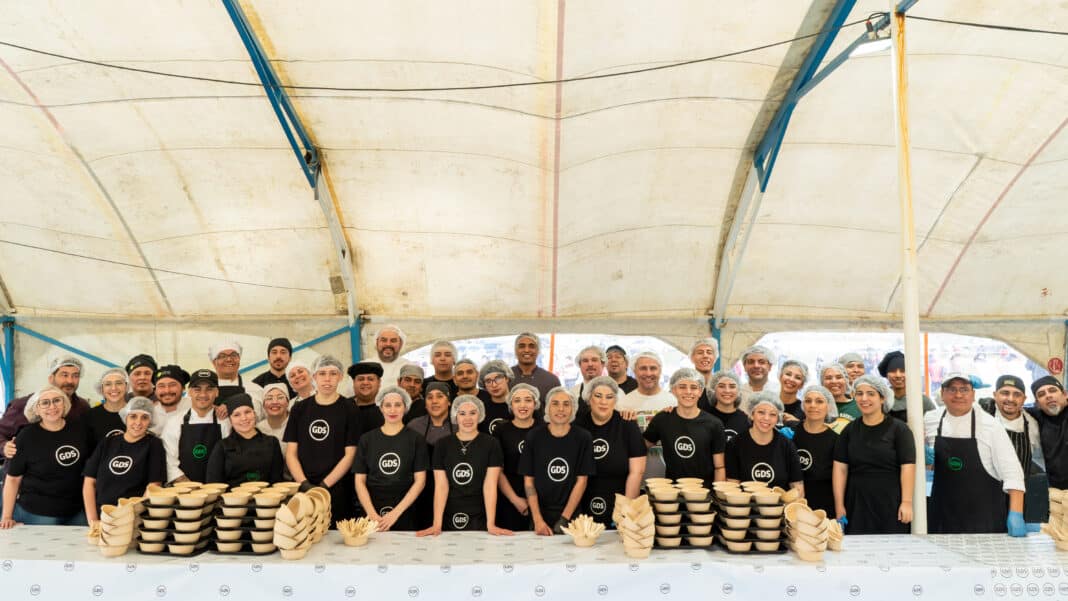 Desde las 10:00 horas, un equipo de más de 100 profesionales de GDS comenzó a instalar 15 paelleras (incluyendo una opción vegetariana), donde se cocinaron y sirvieron las porciones destinadas al festejo. Cincuenta cocineros se encargaron de la preparación, y la entrega se organizó mediante un sistema diseñado para gestionar la gran afluencia de público esperada.