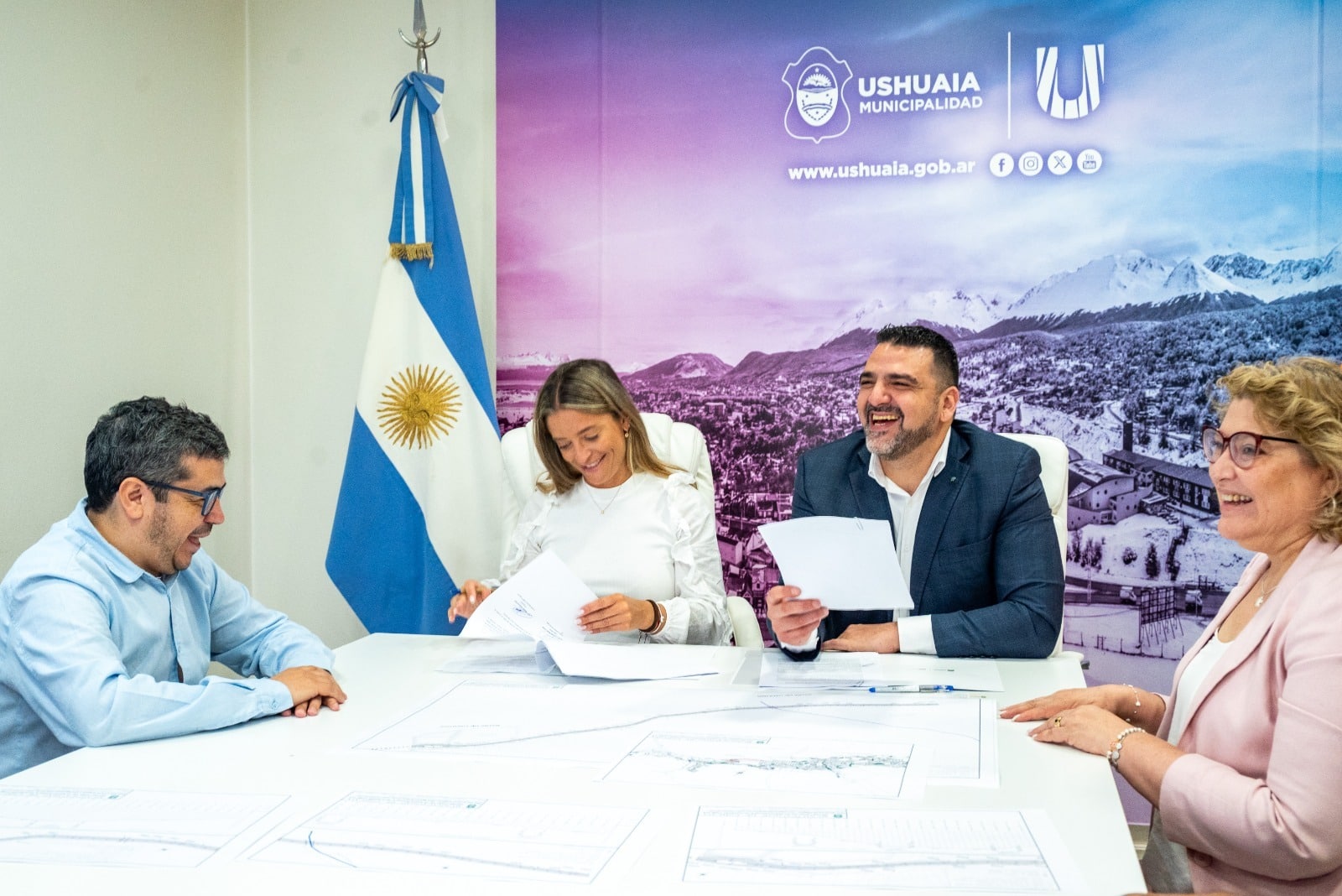De la firma participaron además la secretaria de Planificación e Inversión Pública del Municipio, Carolina Yutrovic, y el secretario de Gobierno, Sebastián Iriarte, quienes acompañan la planificación, articulación institucional y ejecución de la obra.