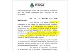 En relación con la medida cautelar solicitada, la Fiscalía concluyó que no se verifican circunstancias de urgencia ni gravedad excepcional que justifiquen su dictado. Además, advirtió que lo requerido de manera cautelar coincide con el objeto del proceso principal, lo que la torna improcedente.