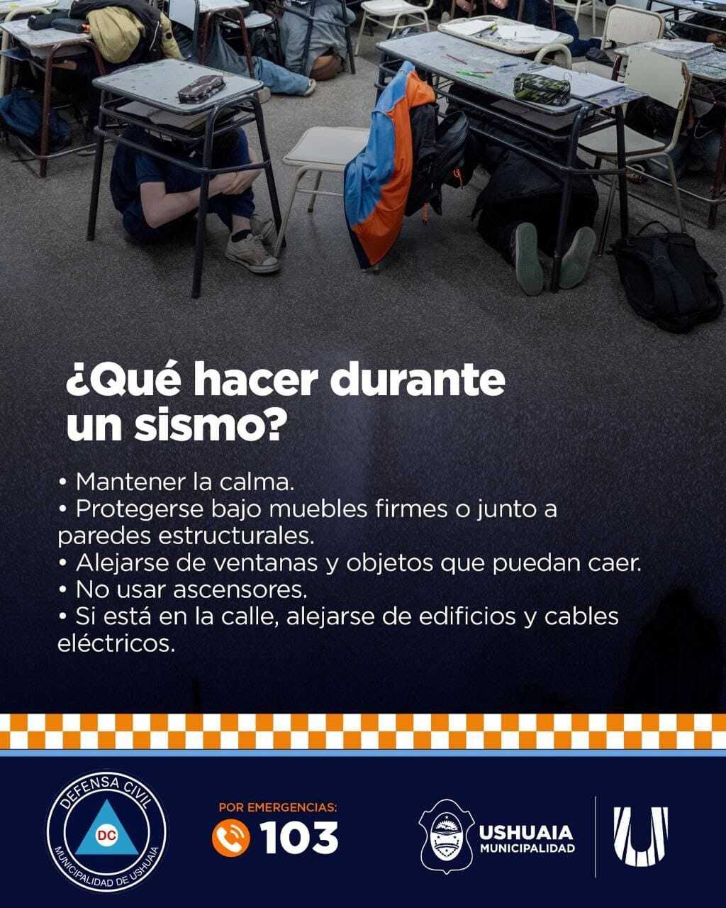 La Municipalidad de Ushuaia, a través de la Dirección de Defensa Civil, brindó información sobre la actividad sísmica en la provincia de Tierra del Fuego y recordó la importancia de fortalecer la prevención y la preparación familiar ante este tipo de fenómenos naturales.